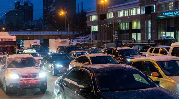 Снегопад спровоцировал 10-балльные пробки в Новосибирске