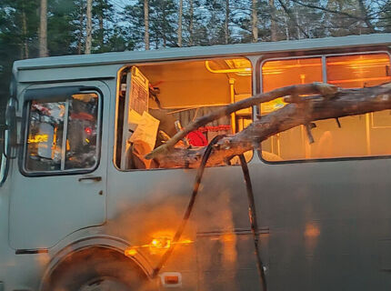 Водитель фуры третьи сутки не может достать кабину из кювета на пермской трассе