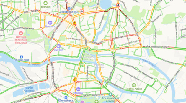 Калининград вечером в пятницу встал в 7-балльных пробках