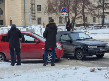 "Перед сильно помятый": два автомобиля столкнулись на кемеровском перекрестке
