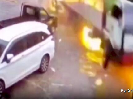 Мотоциклист столкнулся с грузовиком и подорвался в Китае