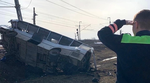Поезд на переезде протаранил автобус с людьми