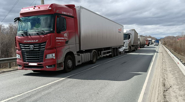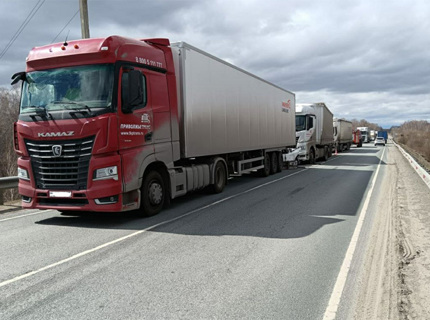 Фуры зажали легковой автомобиль на трассе под Новосибирском