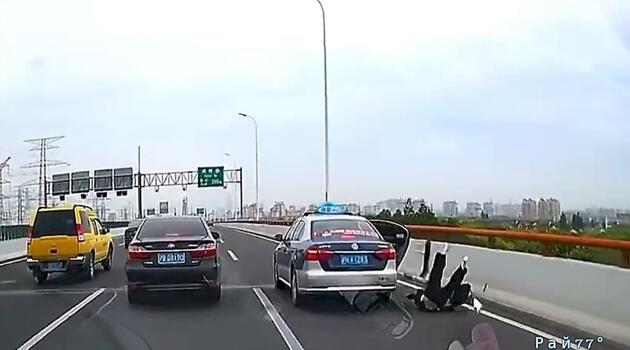 Легковушка и мотоцикл опрокинулись в кювет на глазах у медиков в Китае