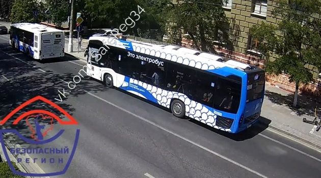 Днем в Центральном районе Волгограда столкнулись автобус и электробус