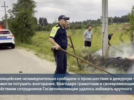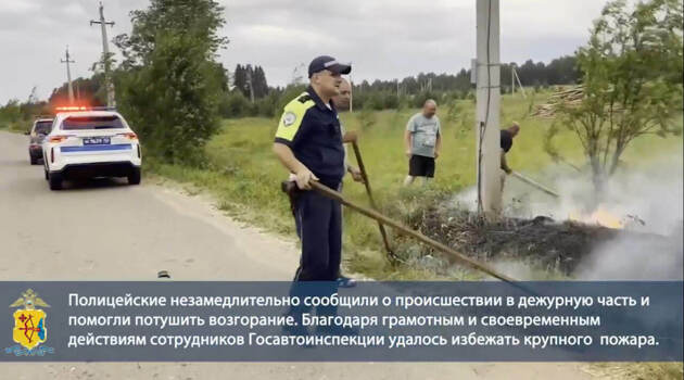 В Кировской области наряд ДПС помог потушить возгорание травы