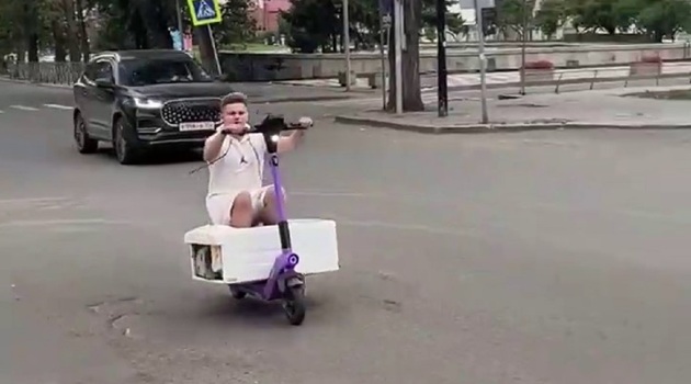 В Новосибирске трэш-блогер катался на самокате верхом на стиральной машине
