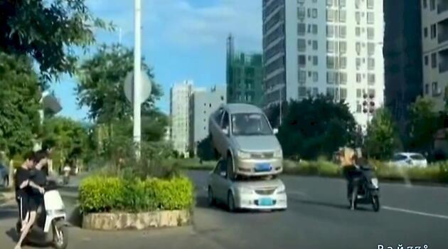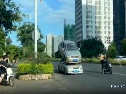 Два седана застыли в «неестественной позе» посреди автомагистрали