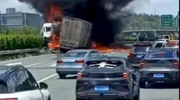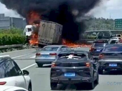 Сокрушительное ДТП со взрывом попало на видео в КНР