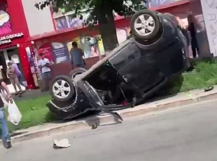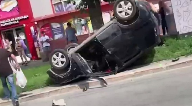 Иномарка с двумя детьми перевернулась на крышу в Новосибирске