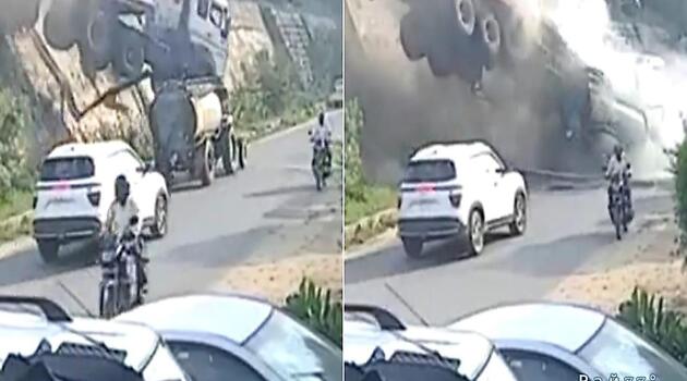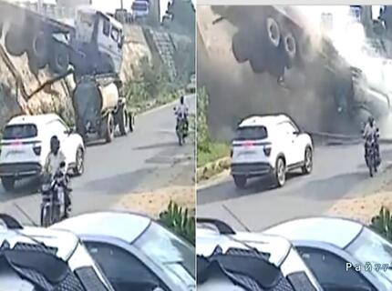 Грузовик проломил ограждение и опрокинулся на трактор в Индии