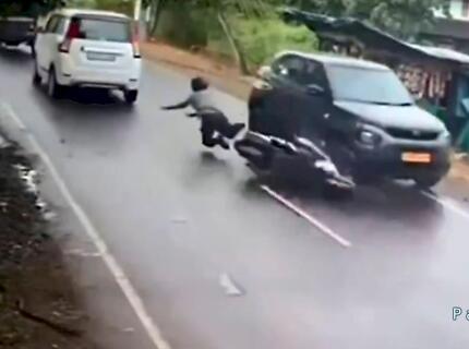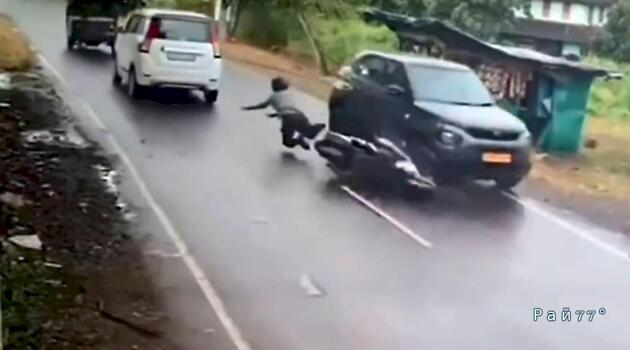 Скутерист лихо избежал лобового столкновения с легковушкой