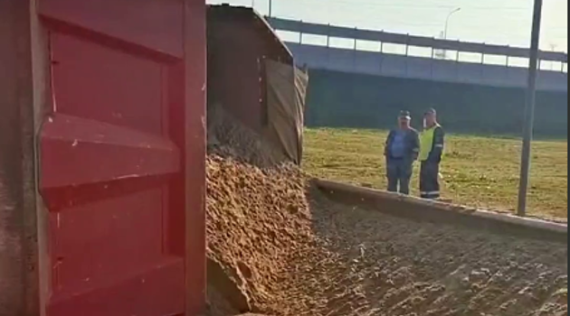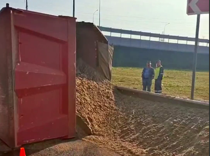 Грузовик с песком перевернулся около Ольгина: водитель пострадал