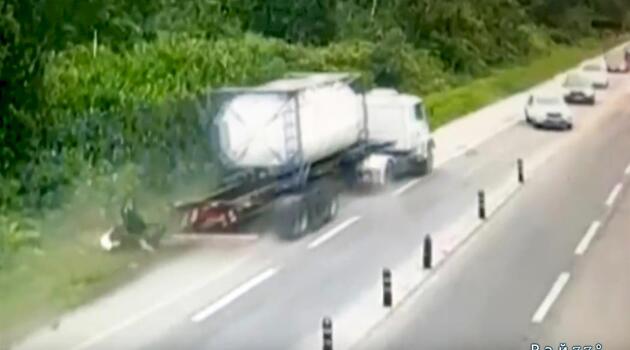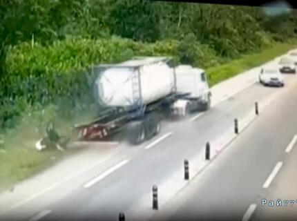 Неадекватный дальнобойщик врезался в 9 автомобилей и мотоциклиста на встречке