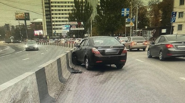 В Ростове на пр. Михаила Нагибина машина въехала в бетонное ограждение