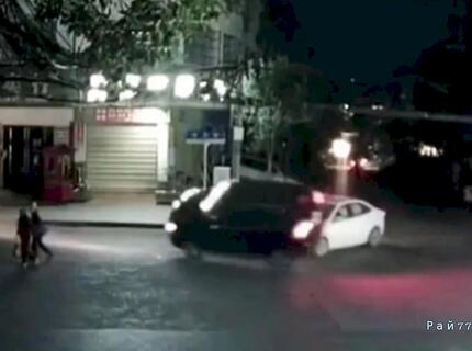 Автомобиль неожиданно опрокинул легковушку на пешеходов