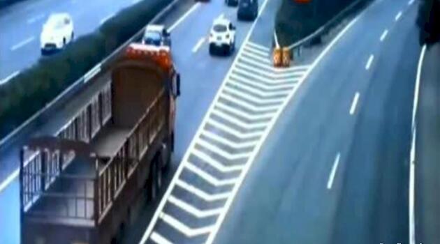 Легковушка пропустила поворот и «пустила под откос» панелевоз в Китае