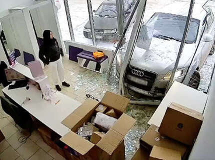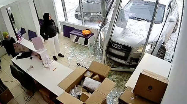В Урюпинске женщина протаранила на Audi двери ПВЗ и попала на видео