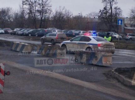 Курские водители объезжали бетонные блоки на ул.Энгельса по газону