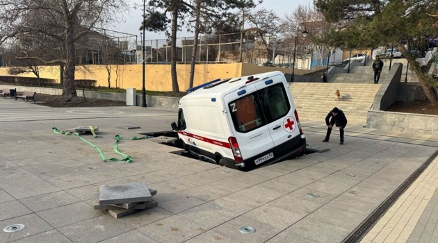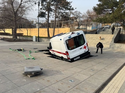 В Крыму машина "скорой" провалилась в светомузыкальный фонтан