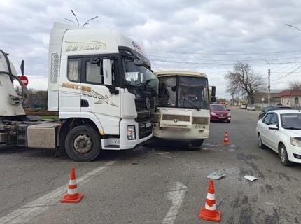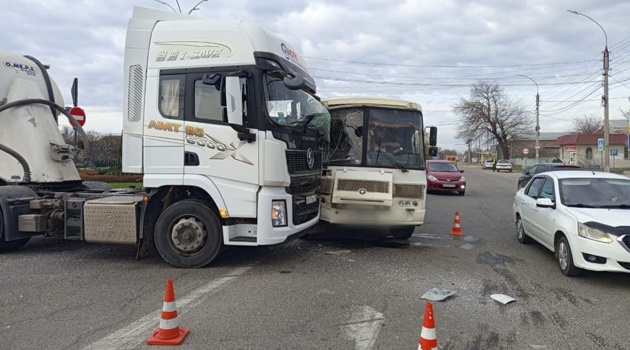 На Кубани грузовик врезался в автобус, пострадала пассажирка