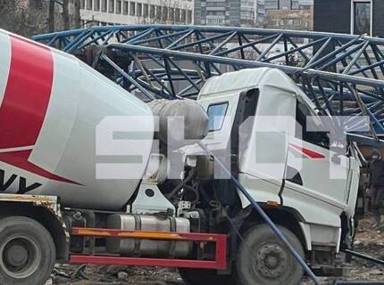 В Москве строительный кран упал на бетономешалку вместе с водителем внутри