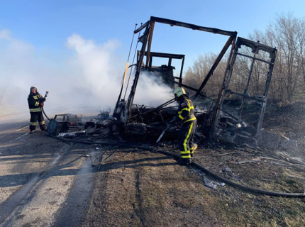 В Самарской области 16 апреля на трассе загорелась фура с бытовой техникой