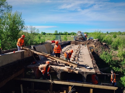 В Черемисиновском районе ведется ремонт моста через реку Косоржа