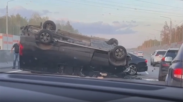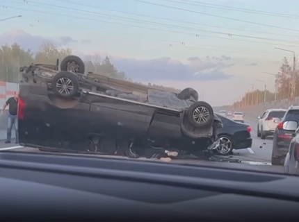 В Подмосковье микроавтобус с детьми столкнулся с автомобилями и перевернулся