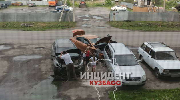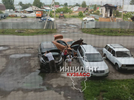 Две машины влетели в припаркованный автомобиль в Кемерове