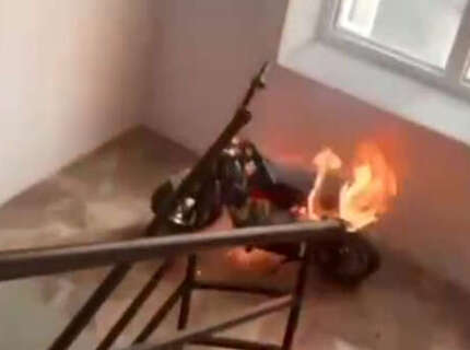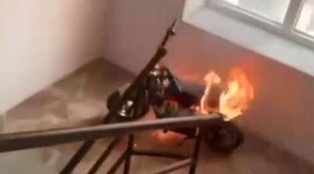 В Ростове электровелосипед загорелся на лестнице дома и это попало на видео