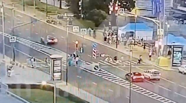 Момент наезда автомобиля на толпу пешеходов в Москве попал на видео