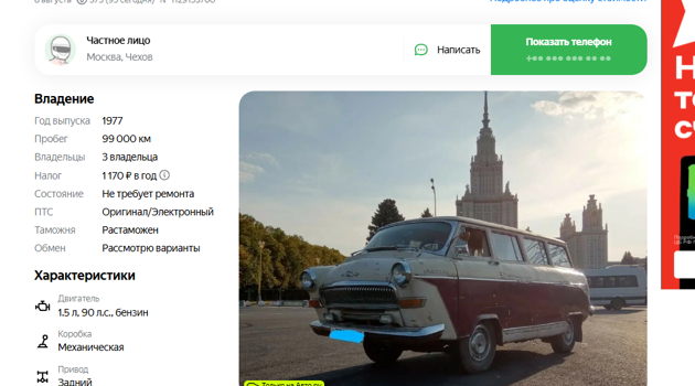 В России начались продажи минивэна "Волга": он создан в одном экземпляре