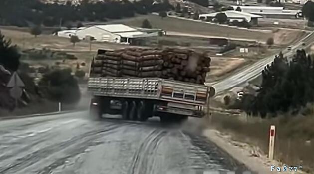 Экстремальный спуск лесовоза по скользкой дороге попал на видео в Турции