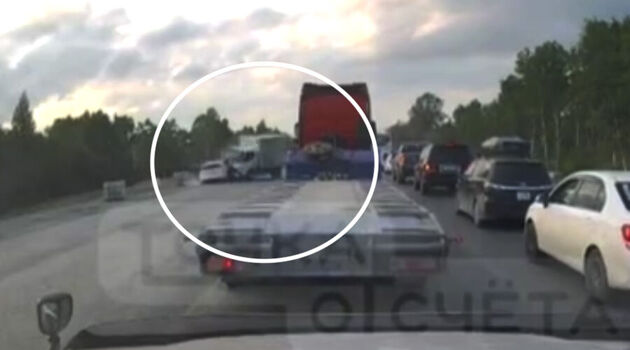 На Сахалине на видео попало жесткое столкновение Toyota Prius с грузовиком