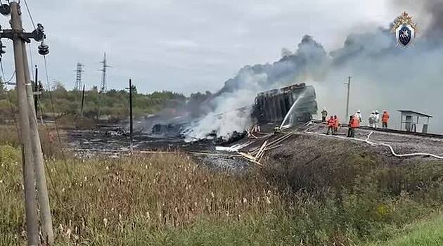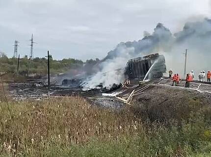 Черный столб дыма от столкновения поезда и грузовика в Смоленской области попал на видео