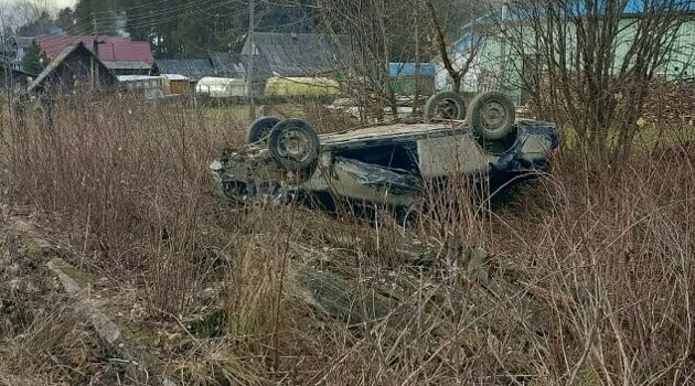 В Кировской области водитель «уложил» «Приору» на крышу и сбежал