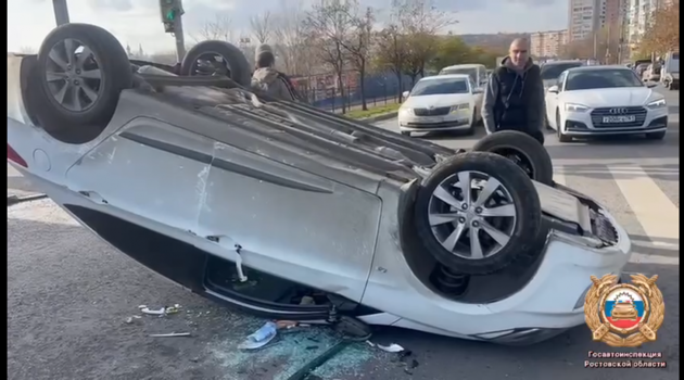 В Ростове произошло ДТП с опрокидыванием, пострадали два человека
