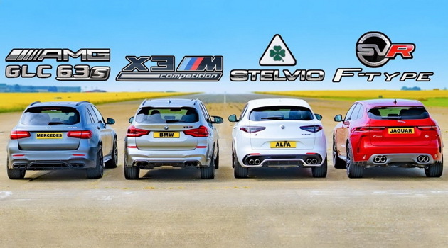 Видео: кроссоверы BMW, Mercedes-AMG, Jaguar и Alfa Romeo сразились в дрэге