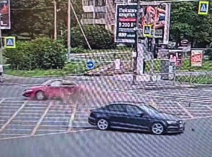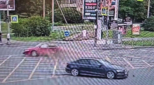 Появилось видео с наездом Audi на пешехода при ДТП на перекрестке в Петербурге