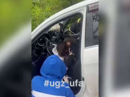 В Уфе на видео сняли, как спасатели деблокировали пострадавшую, зажатую в авто