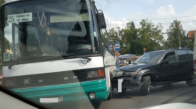На ул. Герцена из-за столкновения BMW и автобуса образовалась пробка