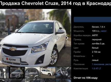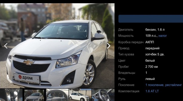 В РФ выставили на продажу Chevrolet Cruze с минимальным пробегом