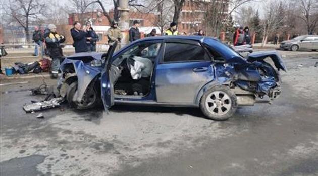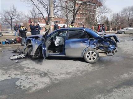 Автомобиль врезался в опору ЛЭП в Новочеркасске