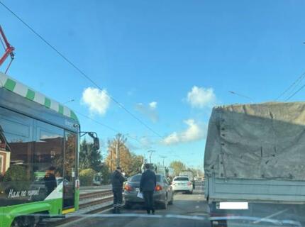В Курске 2 иномарки столкнулись и одна вылетела на трамвайные пути