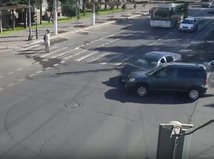 В центре Волгограда около областной администрации столкнулись две иномарки