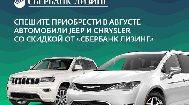 Спешите приобрести в августе автомобили Jeep и Chrysler со скидкой от «Сбербанк Лизинг»