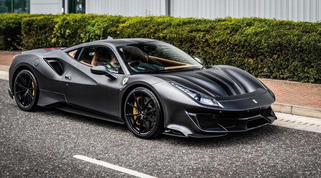Черный суперкар Ferrari F8 Tributo с динамичным дизайном получил комплект эффектных колёс