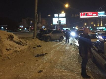 Две столкнувшиеся «Тойоты» вылетели на тротуар
