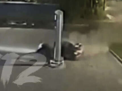 На видео попало, как в Ачинске Honda разорвало после столкновения с колонкой АЗС